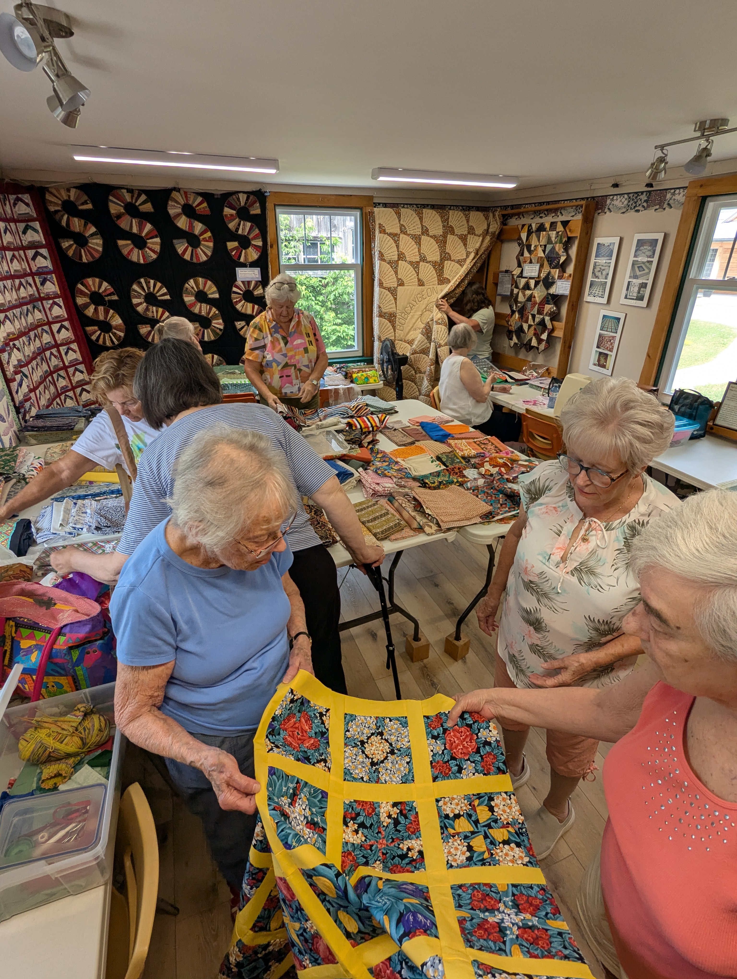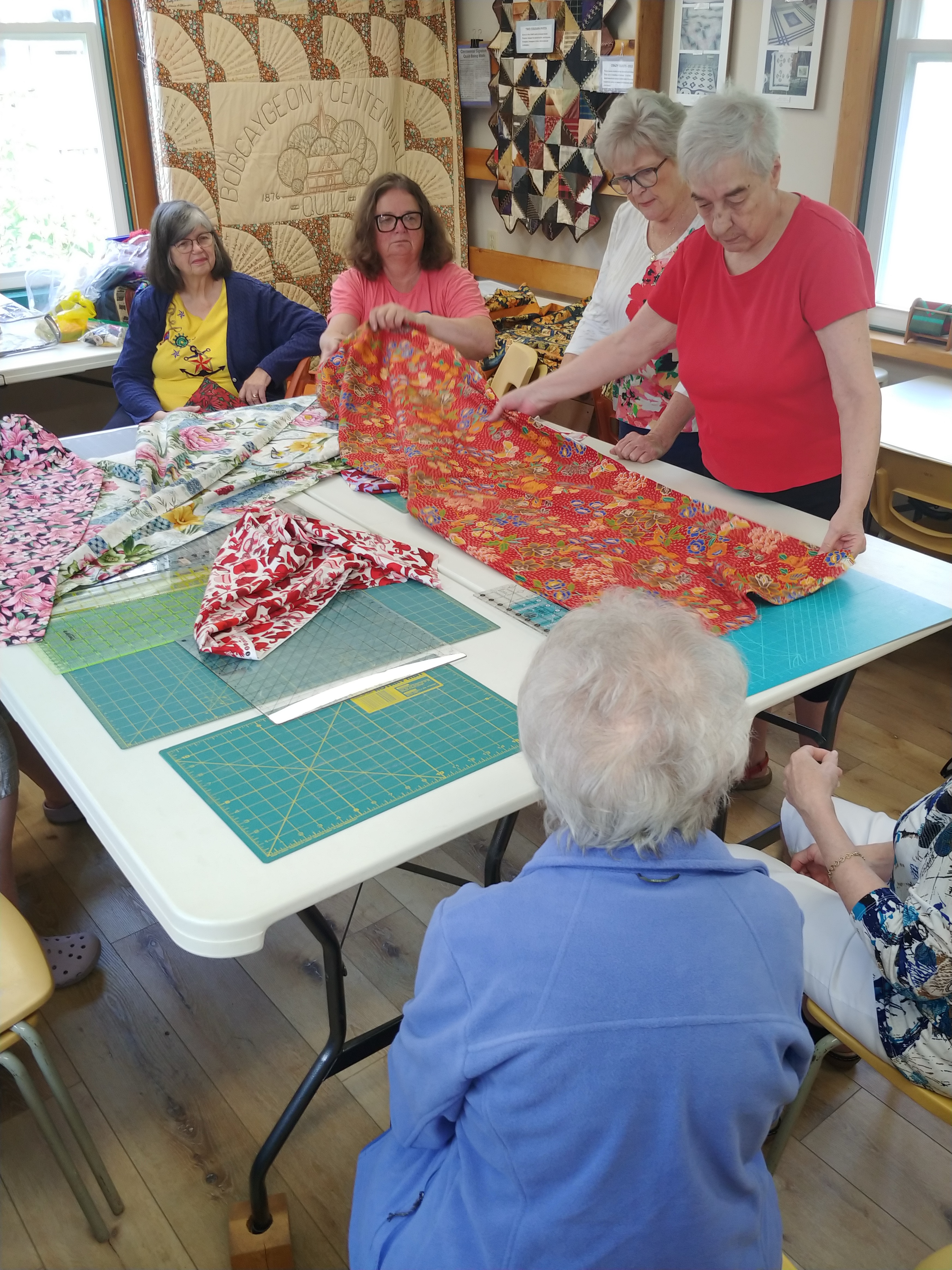 We meet at the Wray House in Kawartha Settlers’ Village from 10-3, Monday and Wednesday's, May 1st until October 31st. The back room of this beautiful log home is set up for our group sewing. The natural light and the electrical lighting seems to have been designed for our needs. We bring our lunch and stay for the day! We have use of the washroom facilities and the kitchen. On colder days, the furnace and our high level of energy keeps us warm. On warmer days the excellent ventilation and our flexibility to adjust our hours, maintains our comfort. Our library, located in a beautiful china cabinet in the dining room is a wonderful resource centre. We have cutting boards and rulers, irons and ironing boards, donated fabric, some sewing supplies, and two basic sewing machines for your use. Please come out and join us and bring your personal sewing machine and preferred sewing supplies.