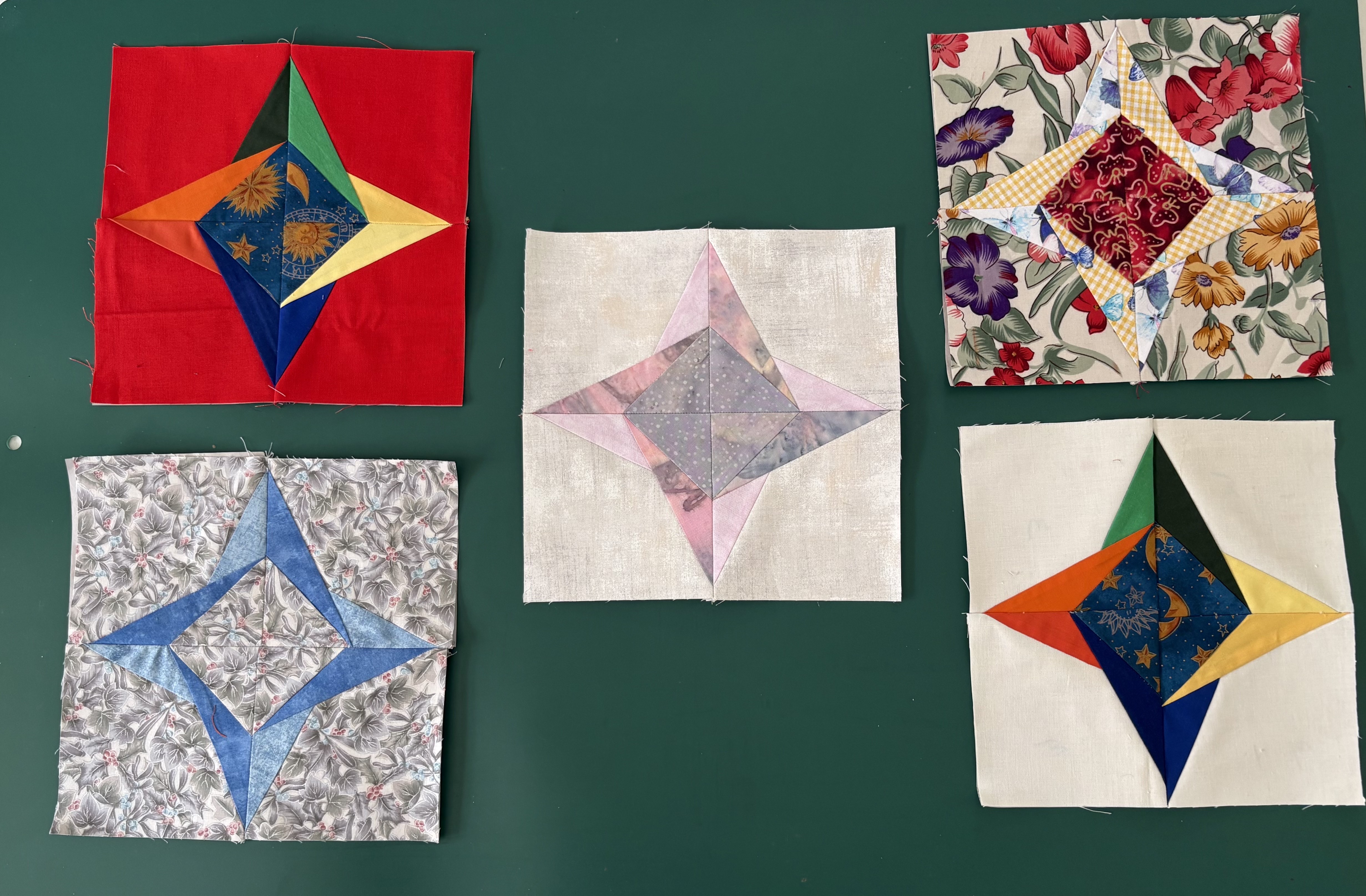 Linda and her Sister Kathy taught a 2 day introductory to Paper Piecing Folded Stars workshop. Everyone completed one, Nancy even added two side borders and made a placemat. Judy and Marilyn have plans to make more stars to incorporate into tablerunners. Hopefully Bonnie and Sylvia will bring their completed projects to show off as well.