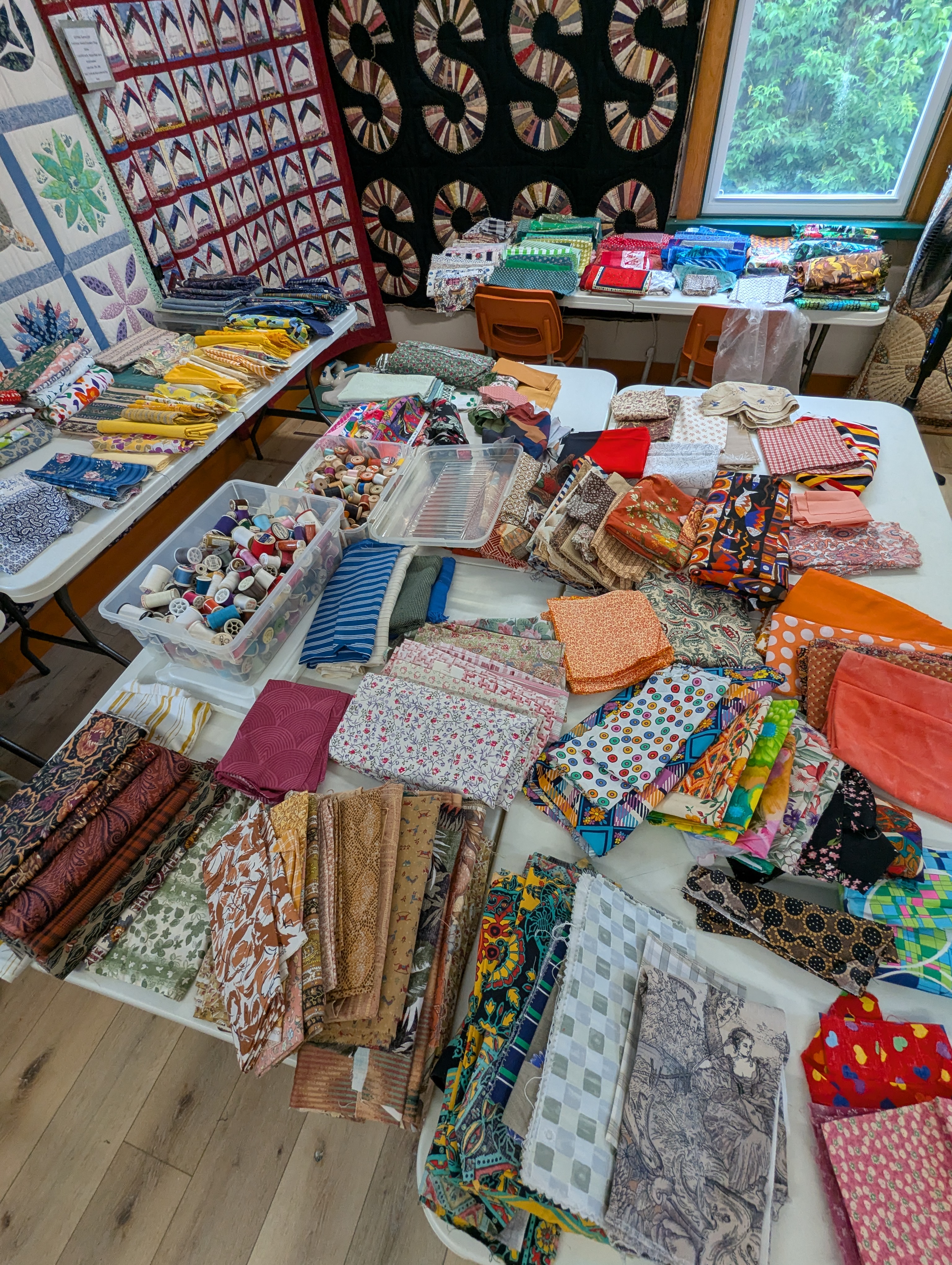 Many came out to enjoy some stash enhancement; some still remains upstairs at the Wray house, so please drop by if you would like to make a charity quilt or need some test fabric for an block or pattern you are working on.